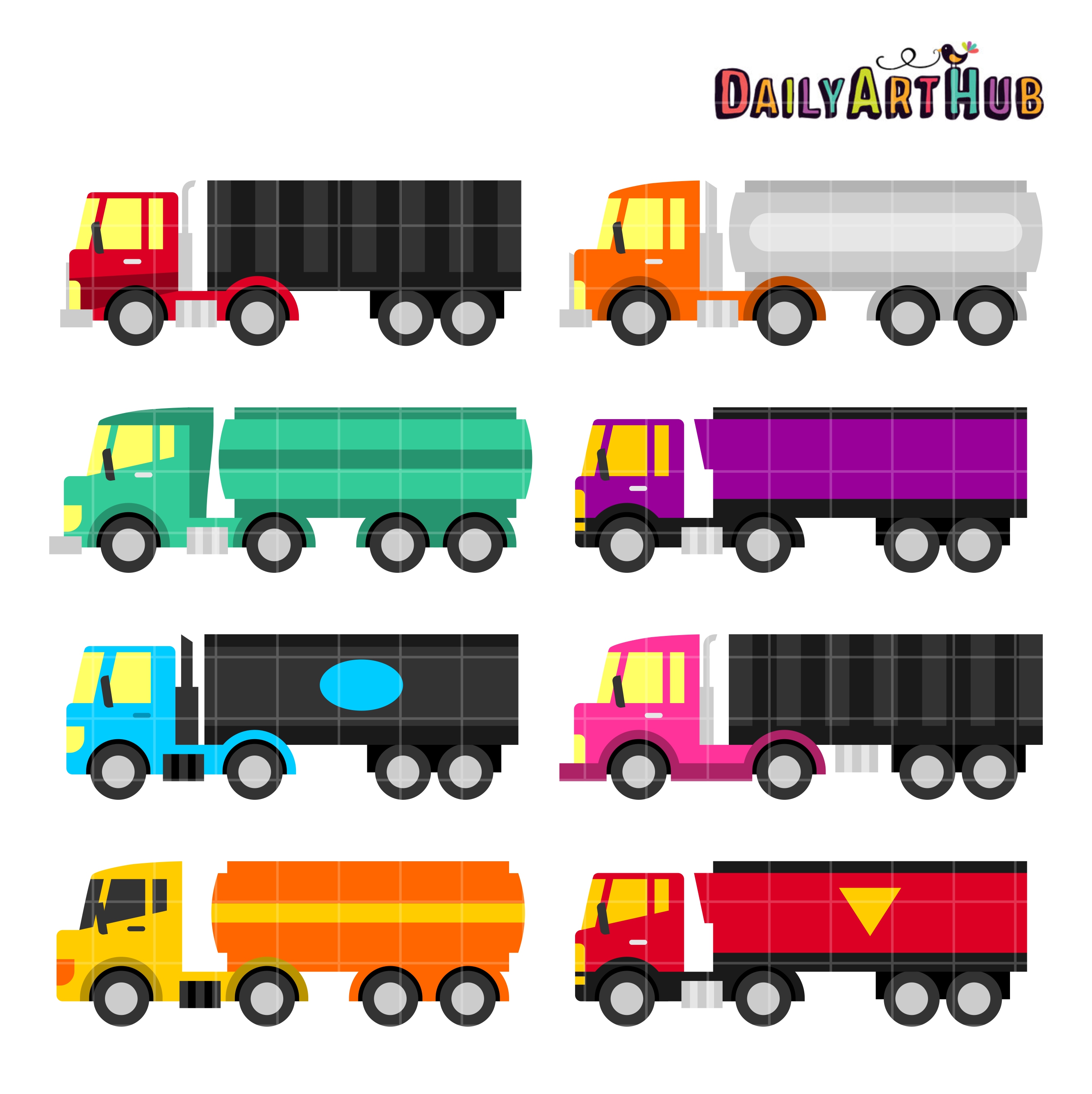 Colorful Trailer Trucks Clip Art Set – Daily Art Hub – Free Clip Art
